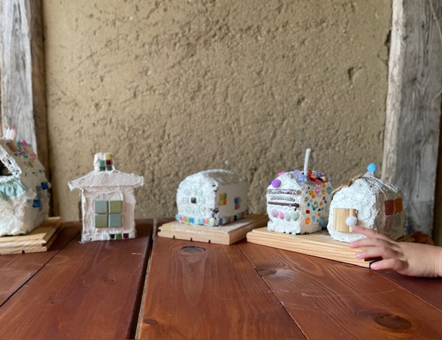 炭化コルクで作ったベースに漆喰を塗って飾りつけ。