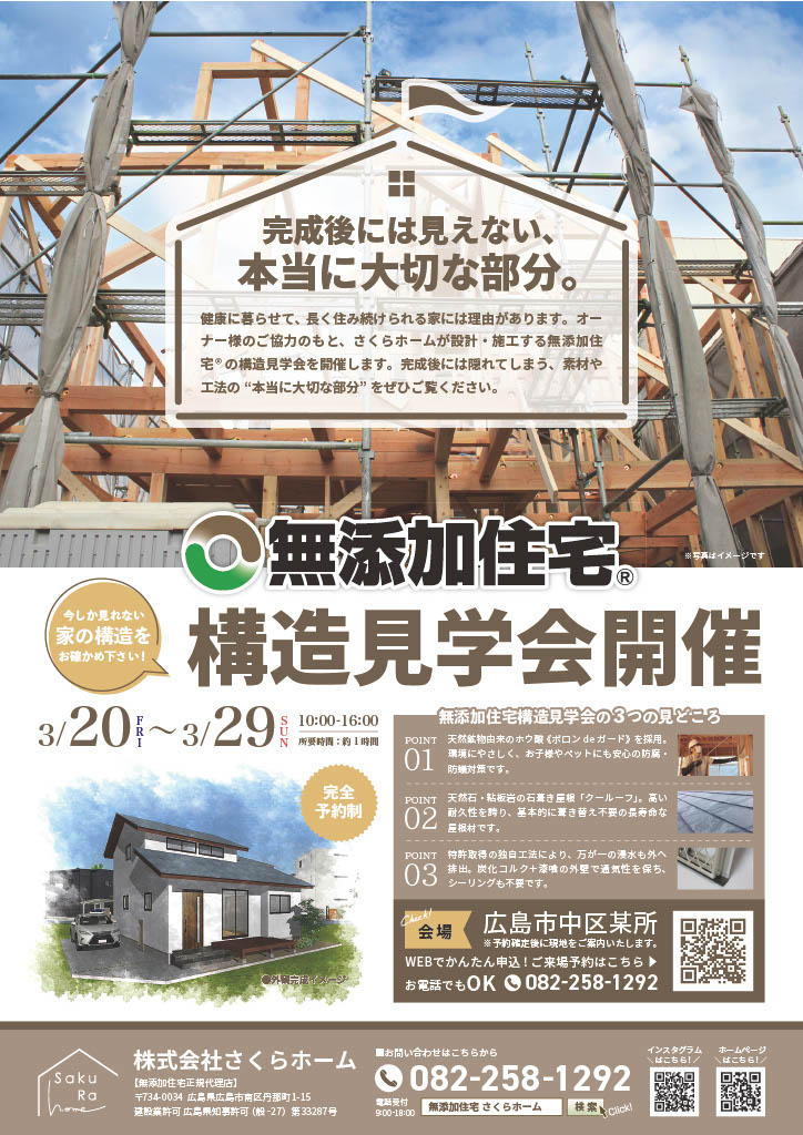 さくらホームが設計施工する、無添加住宅®の構造見学会。