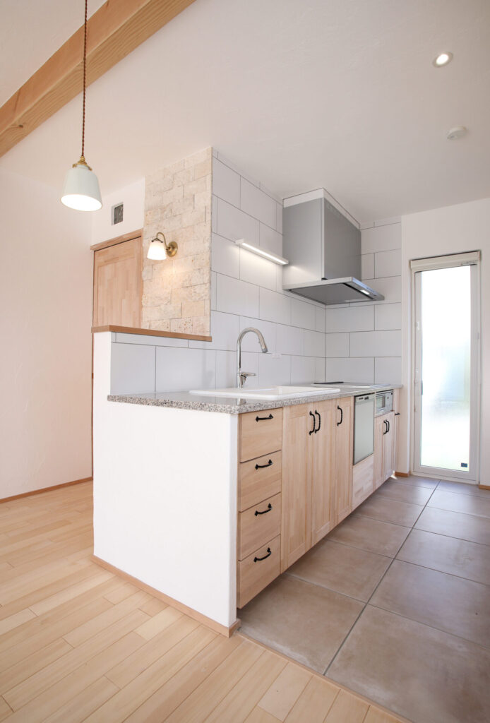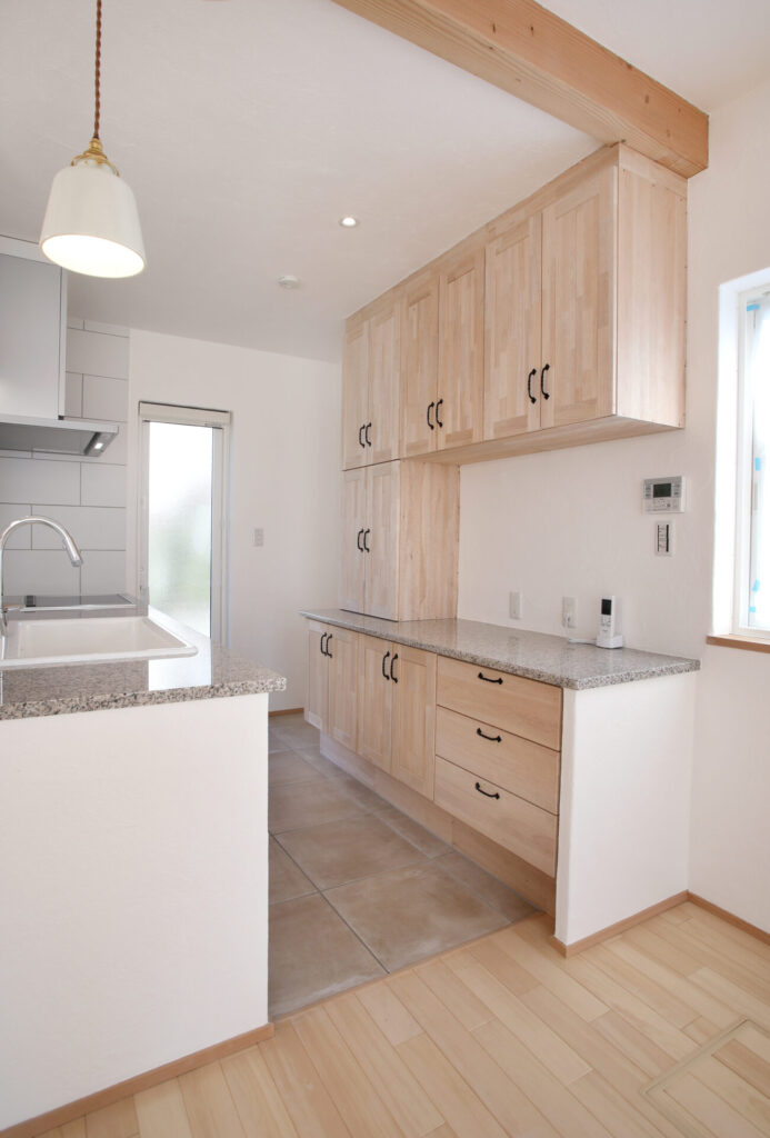キッチンの扉は米のり集成材を使用し、ナチュラルな暮らしに寄り添ってくれます。