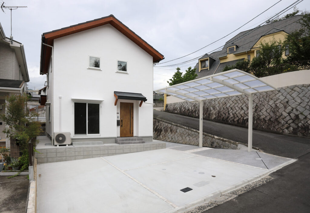 玄関庇にもクールーフを使いナチュラルなアクセントに。