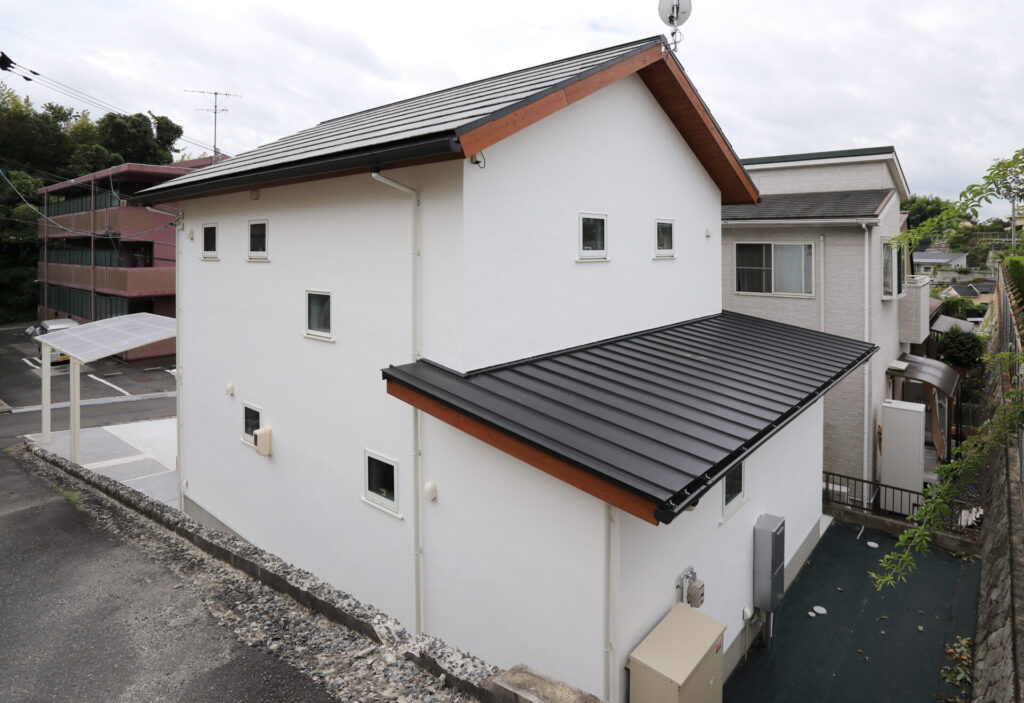 2階の大屋根部分にはメンテナンスフリーの天然石、クールーフを採用し、