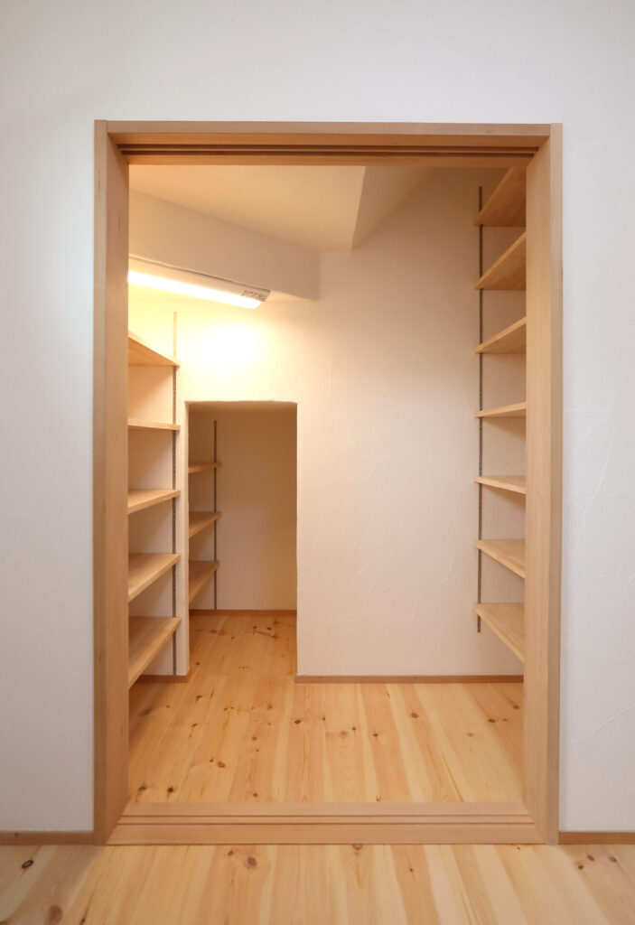 さくらホームの無添加住宅は、収納スペースも壁、天井とも漆喰仕上げ。