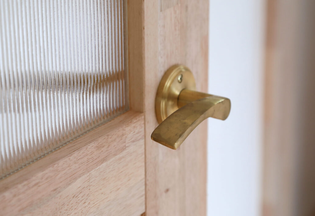 真鍮製のドアノブや取手は、使い込んでいくうちに雰囲気のある色に。