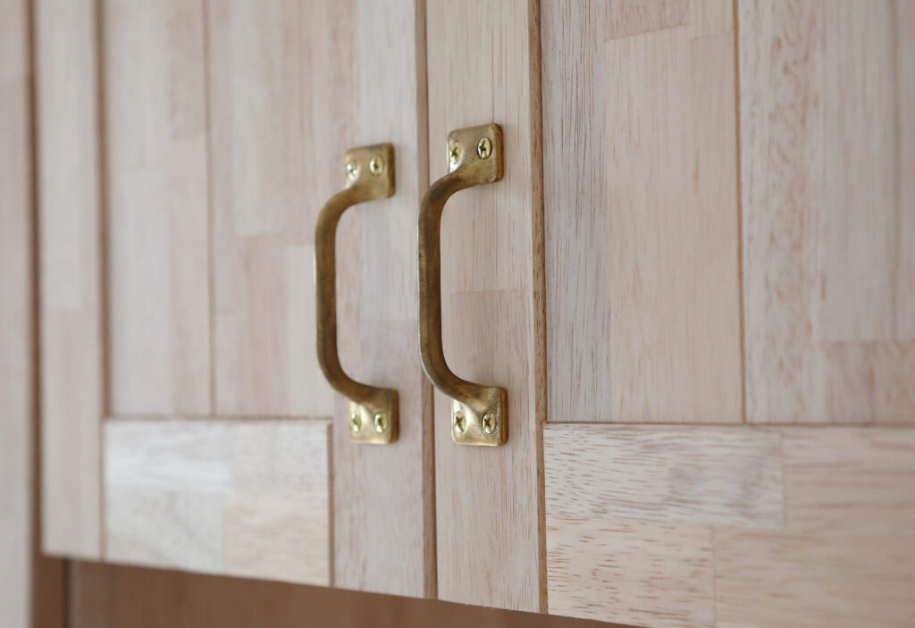 キッチンのフロント部分には化学接着剤と比べ、空気の質はもちろん、木材と相性の良い